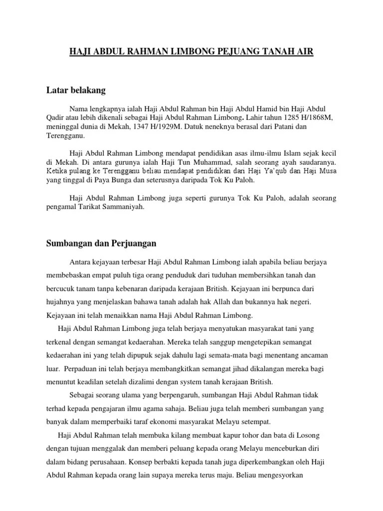 Faktor Penentangan Haji Abdul Rahman Limbong / Sebab Penentangan Tokoh Tempatan Worksheet. Mencapai kemerdekaan tanah melayu b. Menegakkan keadilan semasa jepun memerintah tanah melayu d. Menghalau inggeris di negeri mereka c.